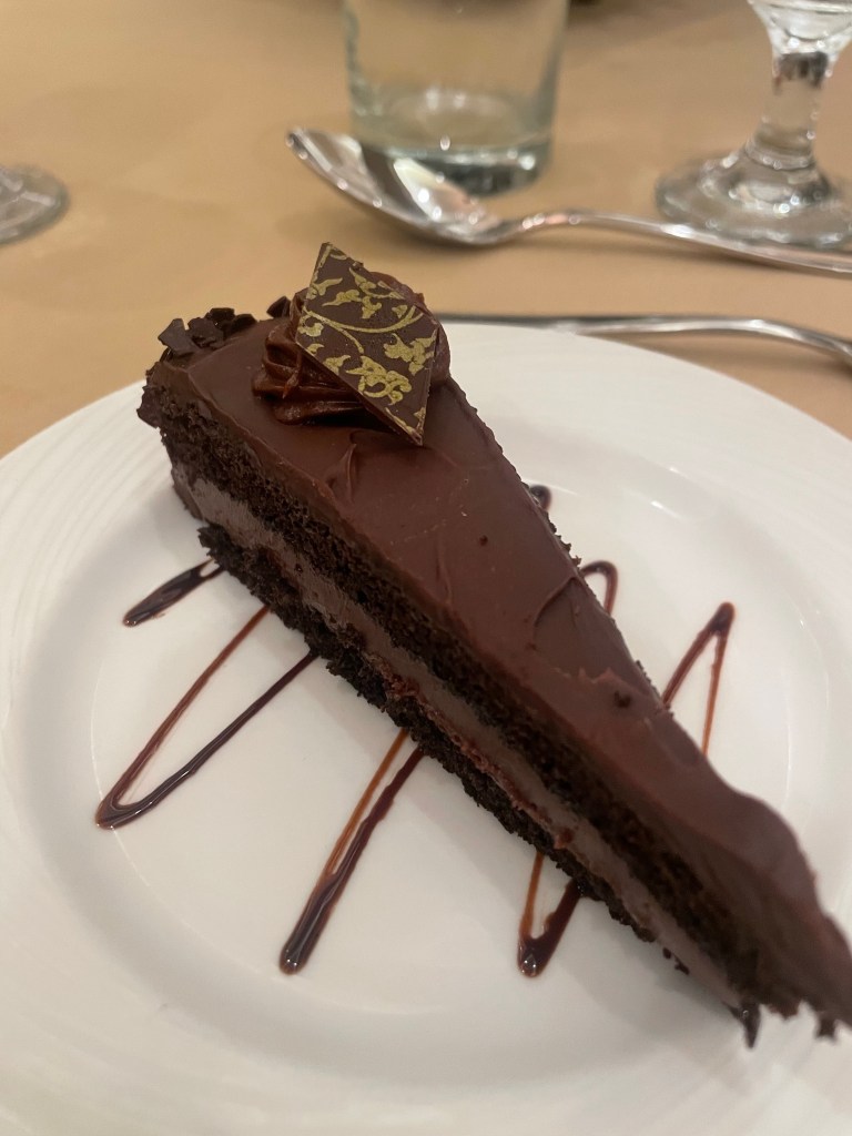 Dessert was a layered chocolate cake. It was a thin slice so it wasn’t too rich. It was delightful.